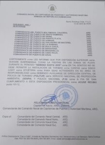 La Armada de República Dominicana, a través del Comando Naval de Capitanías de Puertos y Autoridad Marítima, anunció este sábado que quedan suspendidas todas las fiestas en áreas de playas durante la Semana Santa 2025.